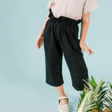 Paperbag culottes with elastic waist and enveloped pockets at sides. Pair it with a trendy blouse for twinning with Mama. Available in Ebony Black or Seaweed Green.