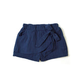 Cute little shorts with side bow and elastic waist. Adorable with a blouse and soft cardigan. Available in Navy or Grape.