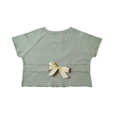 Cotton top with piping details and tie at back for a pretty bow. Adorable with a mini skirt or cool with culottes. Available in Coin and Pistachio. Using natural cotton, it is soft to the touch, easy and comfortable to wear. Plain weave construct with a matt finish. It is water-absorbent and not very heavy.