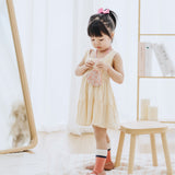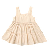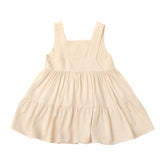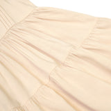 Using natural cotton, this dress is light, airy and smooth on the skin with a nice drape. Main body is of plain weave construct with a matt and textured finish. It is water-absorbent and super lightweight.