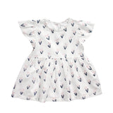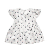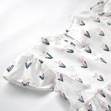Cute babydoll top with tiny floral prints, little ruffled cap sleeves and button fastening at back. Pretty with a skirt or shorts for a carefree day out.
