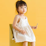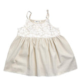 Lovely little babydoll dress with adjustable straps and soft lace top for an extra touch of girly accent. A versatile and chic piece to be worn as a dress first, then sweet little top when mini-me is taller.