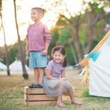 Structured button-up grandad shirt in modern fit with long sleeves and front pocket. Charming with a tailored shorts or pants for twinning with Papa. Available in distinctive Grape colour or staple Daisy white.