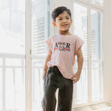 Soft cotton statement T-shirt with cute cap sleeves. Trendy boxy silhouette that is adorable for both boys and girls on a fun day out or cosy day in. Available in sassy Rouge Pink and staple Daisy White.