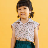 Printed lightweight cotton top with a notch lapel collared neckline in a boxy cut makes a comfortable smart casual piece. Versatile for dressing up or down. Awesome with shorts, skirt or culottes for twinning with Mama too.