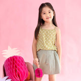 Cute little tank top with polka dots print. A lovely and versatile piece that goes well with most skirts, shorts and pants. Wear it tucked in at front for a modern chic vibe (as seen on model). Available in two earthy pastel tones, Butternut Orange and Pear Green.