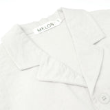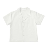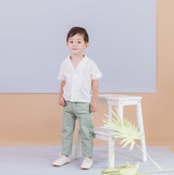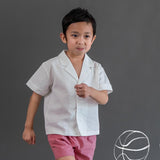Boys' short sleeve shirt redesigned for comfort and style with this open collar and boxy cut. Best paired with a tailored bermuda shorts, as seen on model. A fashionable inspiration for Papa too. Now available in three unique and awesome colours, Daisy white, Mint green and Crepe pink, for easy mix-and-match.